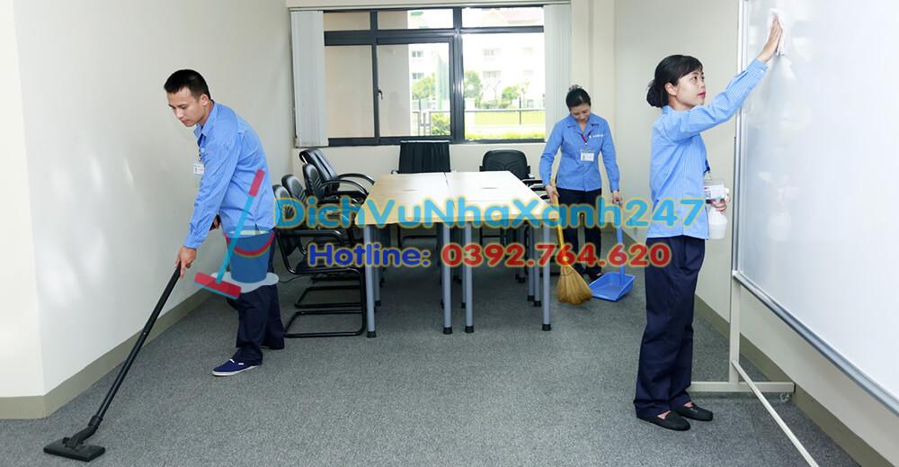Dịch vụ vệ sinh văn phòng hằng ngày sẽ là giải pháp hiệu quả cho các công ty tiết kiệm được thời gian, tài chính và nhân lực Dịch Vụ Nhà Xanh 247 có đội ngũ nhân viên chuyên nghiệp, được đào tạo bài bản, được trang bị máy móc, hóa chất phù hợp để làm sạch bề mặt, an toàn cho vật liệu, nội thất.